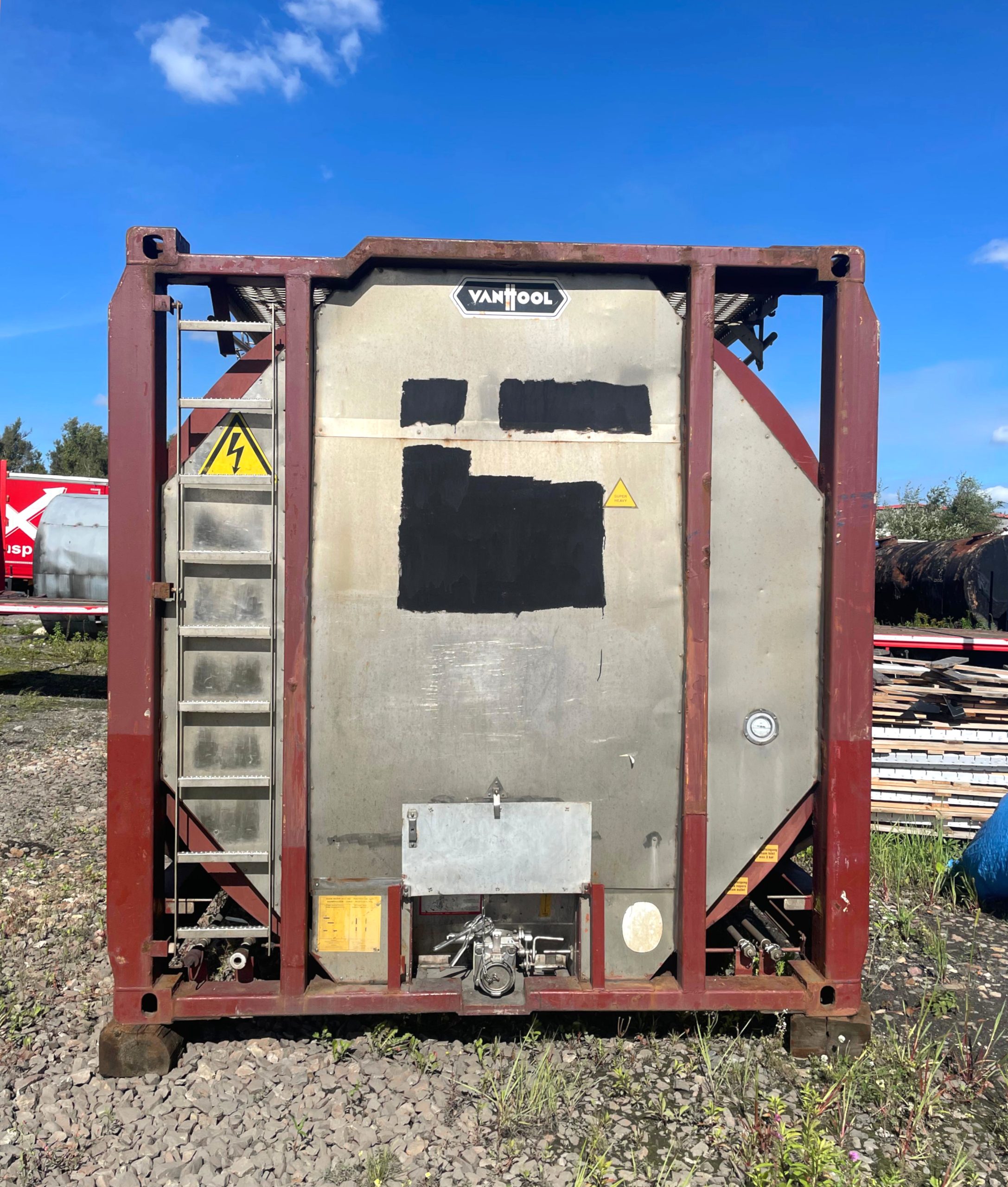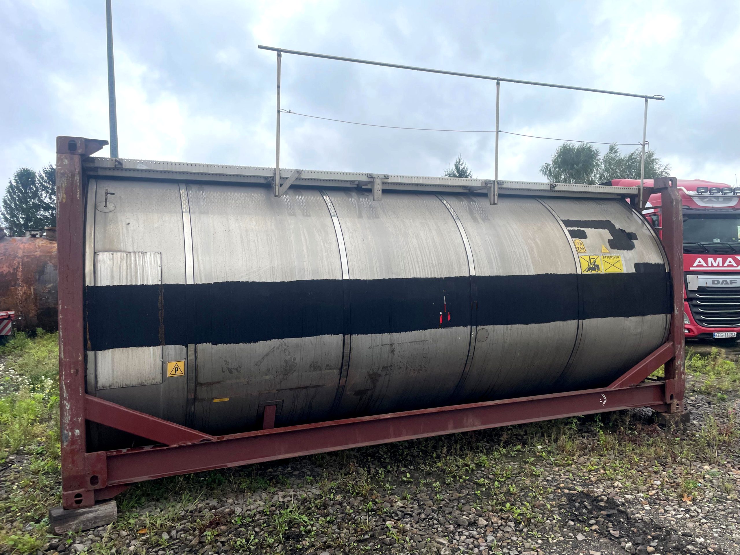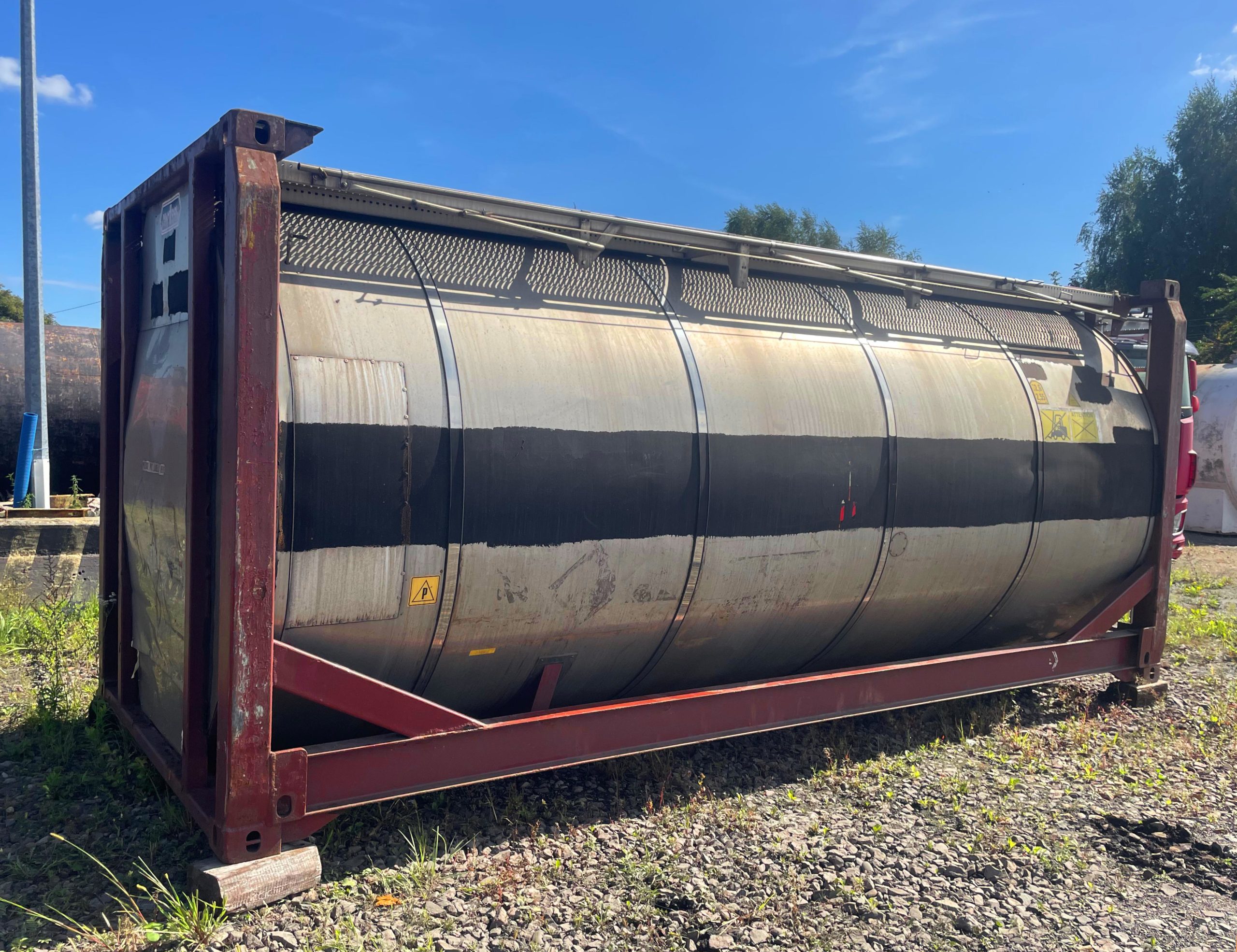 Zbiornik kontenerowy o pojemności 24 000 litrów, wykonany z wysokiej jakości stali nierdzewnej (stal kwasoodporna, kwasówka, stal inox). Konstrukcja przystosowana jest do pracy w warunkach przemysłowych, z możliwością podgrzewania medium dzięki wężownicy grzewczej na parę.